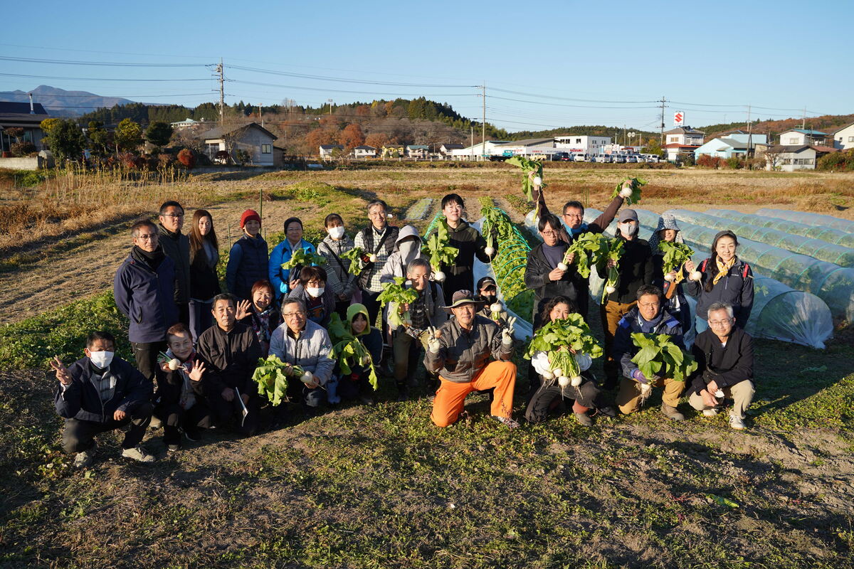 「みやま小かぶ」という品種のカブを皆で収穫し、形の良いものを選別しました。