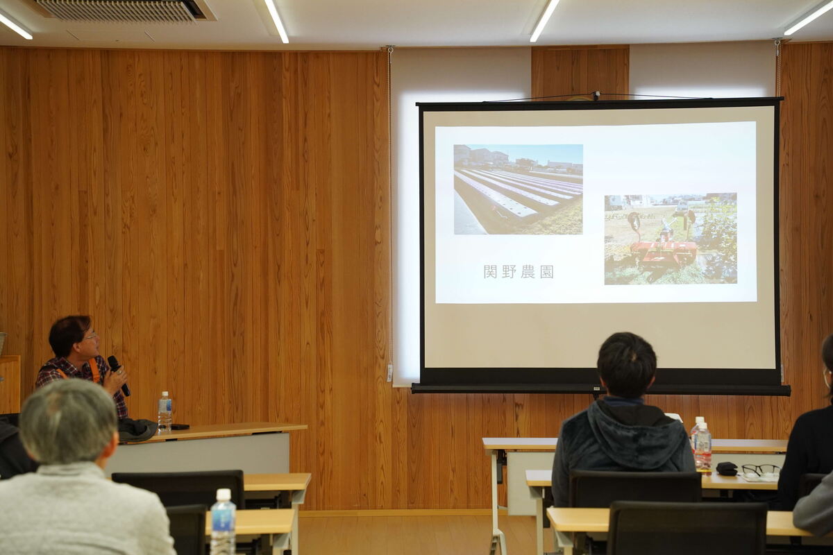 講師の関野幸生さんは、埼玉県富士見市の畑を拠点に、全国各地で無肥料自然栽培の指導や講演を行っています。