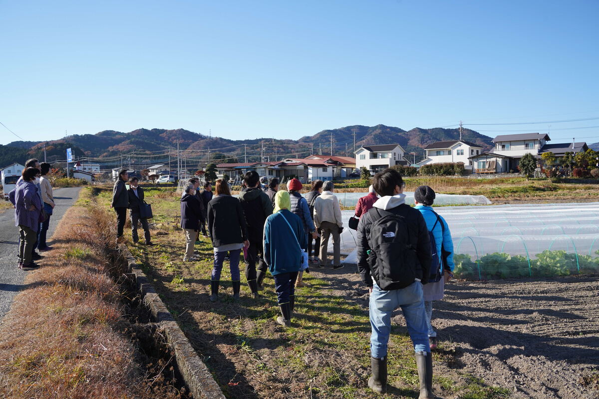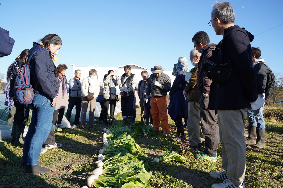座学で固定種とF1種の違いなどを学んだ後、役場横の自然栽培圃場に向かいました。