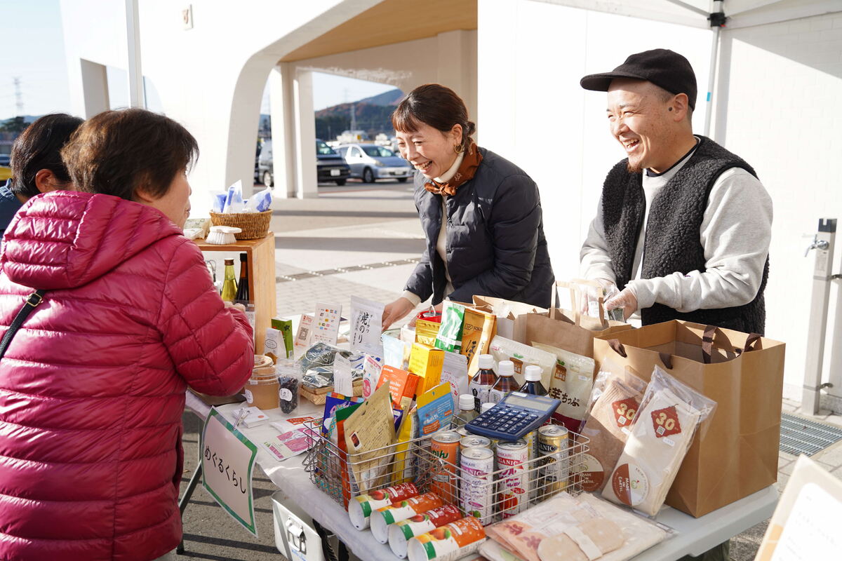 店頭には採れたての土付き有機野菜たちや果物、からだに優しい調味料や雑貨、アート作品が並びました。