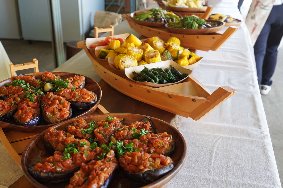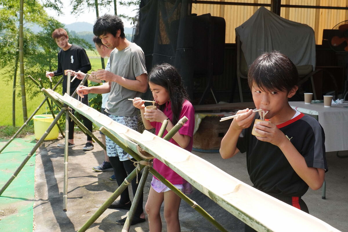 田舎の民宿で、流しそうめんや地元の野菜で作られた手料理を味わったり。
