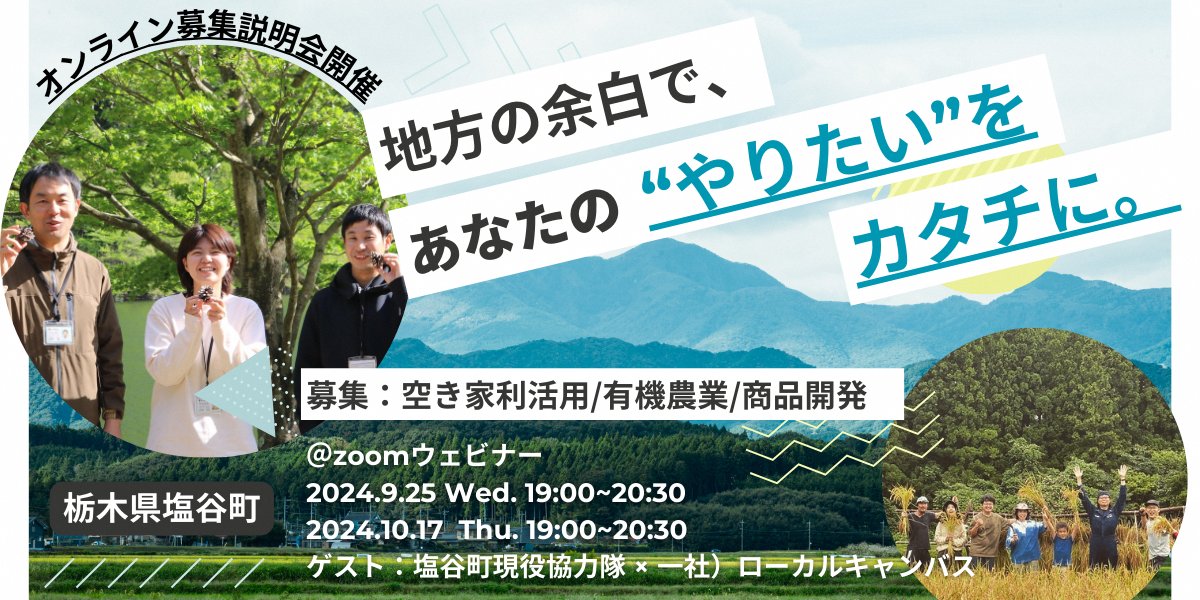 ◆塩谷町地域おこし協力隊オンライン募集説明会